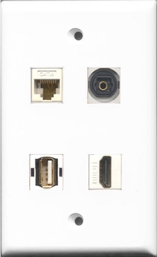 RiteAV 1 Port HDMI and 1 Port USB A-A and 1 Port Toslink and 1 Port Cat6 Ethernet White Wall Plate