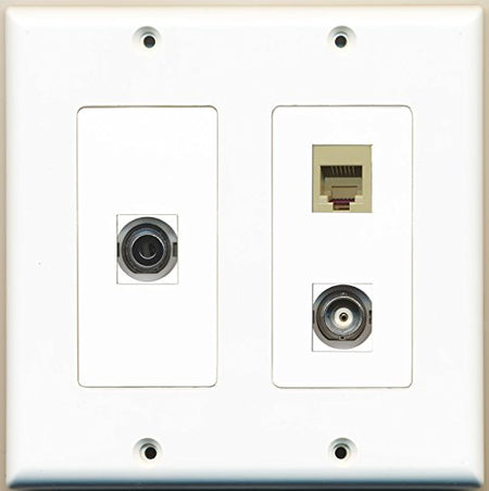 RiteAV - 1 Port Phone RJ11 RJ12 Beige 1 Port 3.5mm 1 Port BNC - 2 Gang Wall Plate