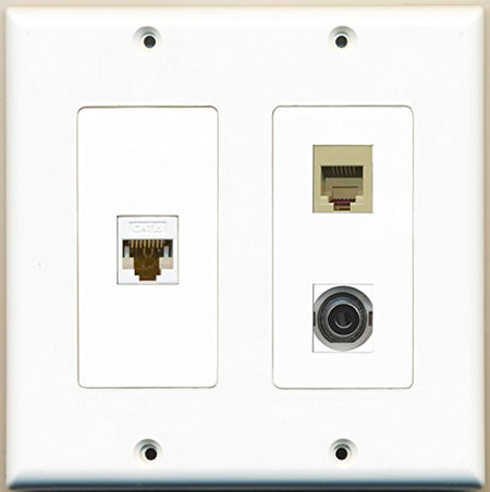 RiteAV - 1 Port Phone RJ11 RJ12 Beige 1 Port 3.5mm 1 Port Cat6 Ethernet White - 2 Gang Wall Plate