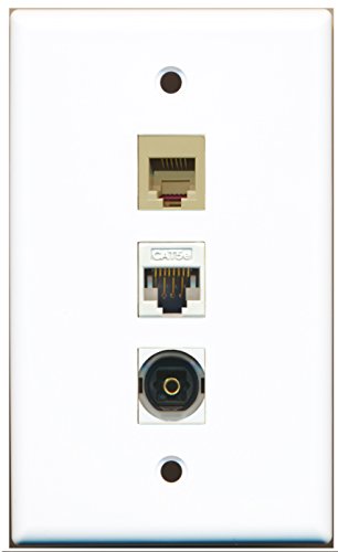 RiteAV - 1 Port Phone RJ11 RJ12 Beige 1 Toslink 1 Cat5e Ethernet White Wall Plate