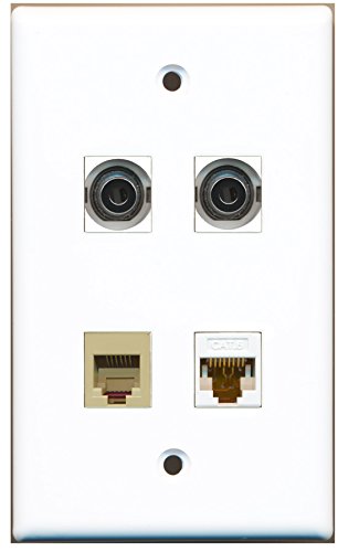 RiteAV - 1 Port Phone RJ11 RJ12 Beige 2 Port 3.5mm 1 Port Cat6 Ethernet White Wall Plate