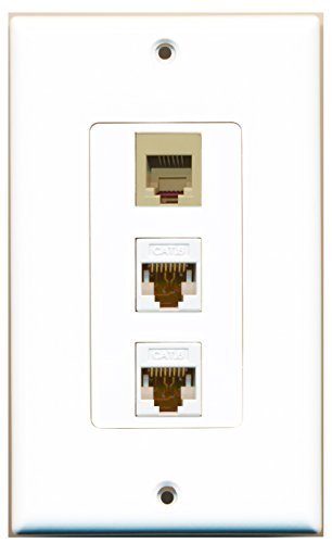 RiteAV - 1 Port Phone RJ11 RJ12 Beige 2 Port Cat6 Ethernet White Decorative Wall Plate Decorative