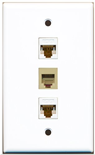 RiteAV - 1 Port Phone RJ11 RJ12 Beige 2 Port Cat6 Ethernet White Wall Plate