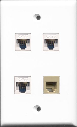 RiteAV - 1 Port Phone RJ11 RJ12 Beige 3 Port Cat5e Ethernet White Wall Plate