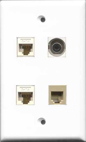 RiteAV 1 Port Phone RJ11 RJ12 Beige and 1 Port 3.5mm 2 Port Cat6 Ethernet White Wall Plate
