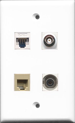 RiteAV - 1 Port Phone RJ11 RJ12 Beige and 1 Port 3.5mm and 1 Port BNC and 1 Port Cat5e Ethernet White Wall Plate