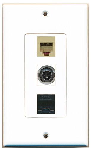 RiteAV - 1 Port Phone RJ11 RJ12 Beige and 1 Port 3.5mm and 1 Port Cat5e Ethernet Black Decorative Wall Plate Decorative