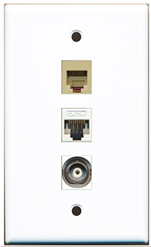 RiteAV - 1 Port Phone RJ11 RJ12 Beige and 1 Port BNC and 1 Port Cat5e Ethernet White Wall Plate