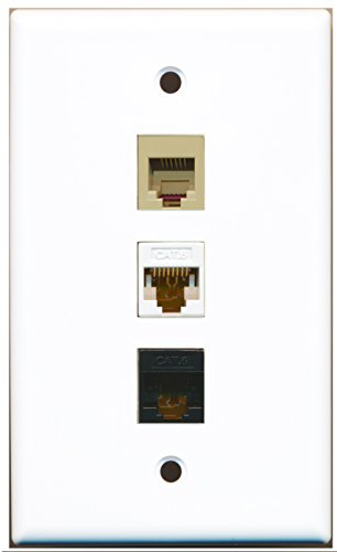 RiteAV - 1 Port Phone RJ11 RJ12 Beige and 1 Port Cat6 Ethernet White and 1 Port Cat6 Ethernet Black Wall Plate