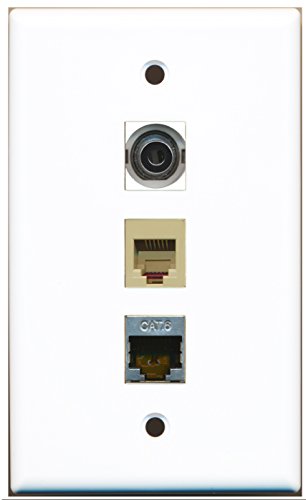 RiteAV - 1 Port Phone RJ11 RJ12 Beige and 1 Port Shielded Cat6 Ethernet and 1 Port 3.5mm Wall Plate