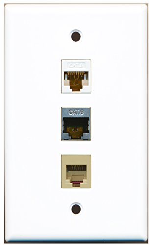 RiteAV - 1 Port Phone RJ11 RJ12 Beige and 1 Port Shielded Cat6 Ethernet and 1 Port Cat6 Ethernet White Wall Plate
