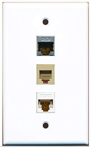 RiteAV - 1 Port Phone RJ11 RJ12 Beige and 1 Port Shielded Cat6 Ethernet and 1 Port Cat6 Ethernet White Wall Plate