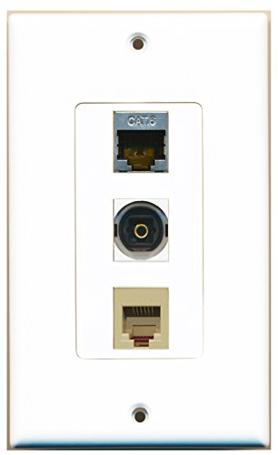 RiteAV - 1 Port Phone RJ11 RJ12 Beige and 1 Port Shielded Cat6 Ethernet and 1 Port Toslink Decorative Wall Plate Decorative