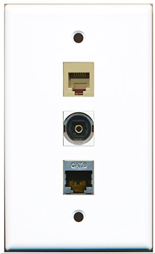 RiteAV - 1 Port Phone RJ11 RJ12 Beige and 1 Port Shielded Cat6 Ethernet and 1 Port Toslink Digital Audio Wall Plate