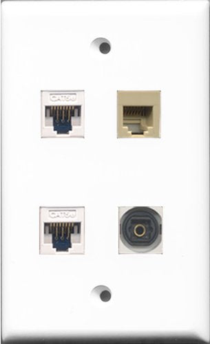 RiteAV 1 Port Phone RJ11 RJ12 Beige and 1 Port Toslink 2 Port Cat5e Ethernet White Wall Plate