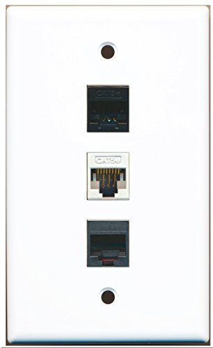 RiteAV - 1 Port Phone RJ11 RJ12 Black and 1 Port Cat5e Ethernet White and 1 Port Cat5e Ethernet Black Wall Plate