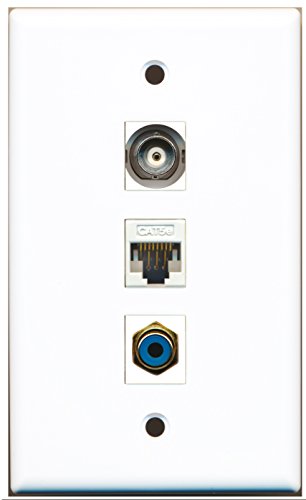 RiteAV - 1 Port RCA Blue 1 BNC 1 Cat5e Ethernet White Wall Plate
