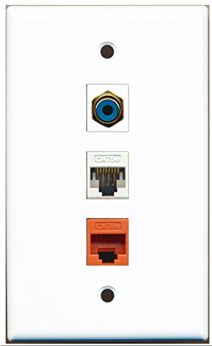 RiteAV - 1 Port RCA Blue 1 Cat5e Ethernet White 1 Cat5e Ethernet Orange Wall Plate