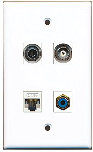 RiteAV - 1 Port RCA Blue 1 Port 3.5mm 1 Port BNC 1 Port Cat5e Ethernet White Wall Plate