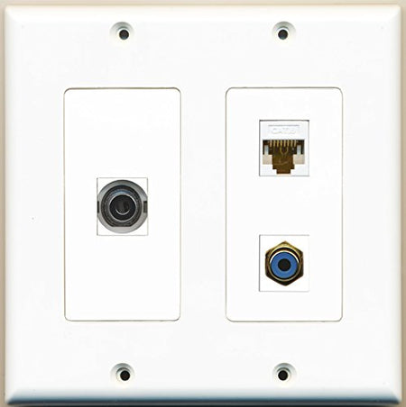 RiteAV - 1 Port RCA Blue 1 Port 3.5mm 1 Port Cat6 Ethernet White - 2 Gang Wall Plate