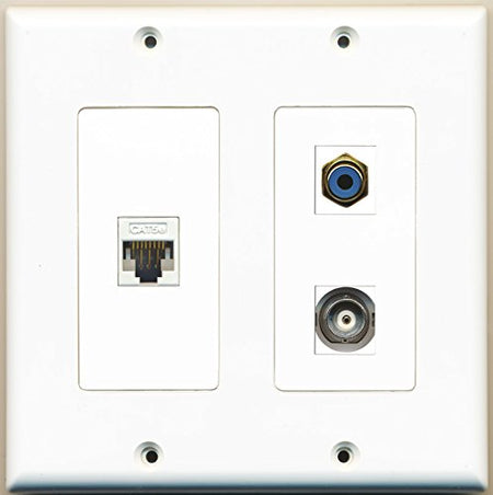 RiteAV - 1 Port RCA Blue 1 Port BNC 1 Port Cat5e Ethernet White - 2 Gang Wall Plate