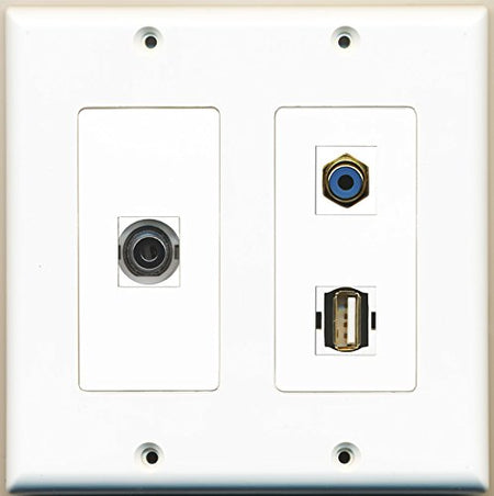 RiteAV - 1 Port RCA Blue 1 Port USB A-A 1 Port 3.5mm - 2 Gang Wall Plate