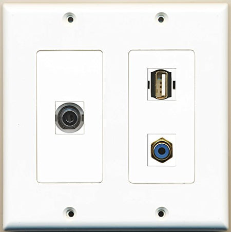 RiteAV - 1 Port RCA Blue 1 Port USB A-A F/F 1 Port 3.5mm - 2 Gang Wall Plate