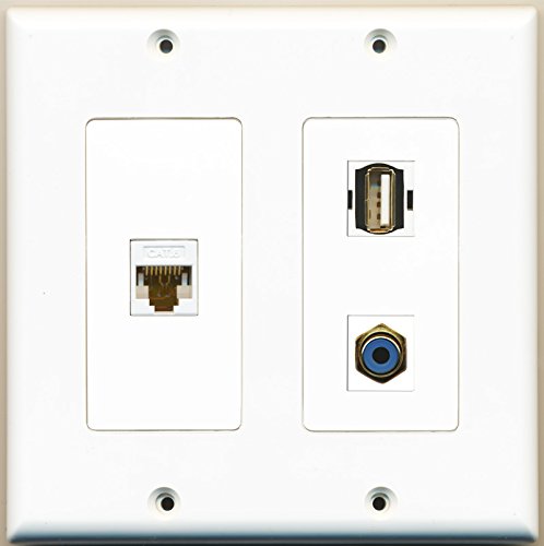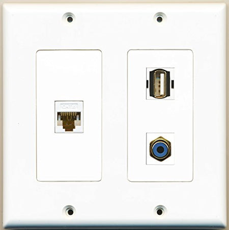 RiteAV - 1 Port RCA Blue 1 Port USB A-A 1 Port Cat6 Ethernet White - 2 Gang Wall Plate