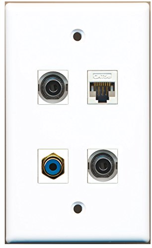 RiteAV - 1 Port RCA Blue 2 Port 3.5mm 1 Port Cat5e Ethernet White Wall Plate