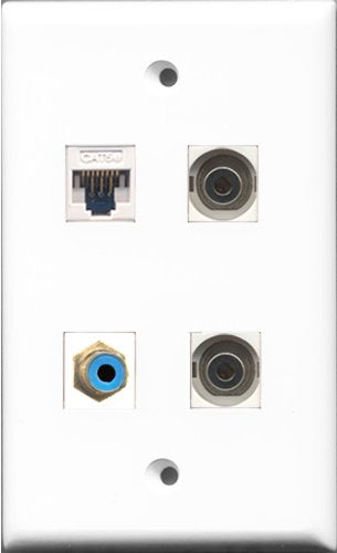 RiteAV - 1 Port RCA Blue 2 Port 3.5mm and 1 Port Cat5e Ethernet White Wall Plate
