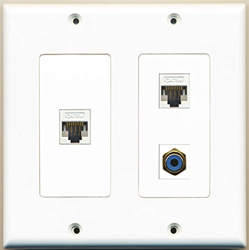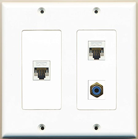RiteAV - 1 Port RCA Blue 2 Port Cat5e Ethernet White - 2 Gang Wall Plate