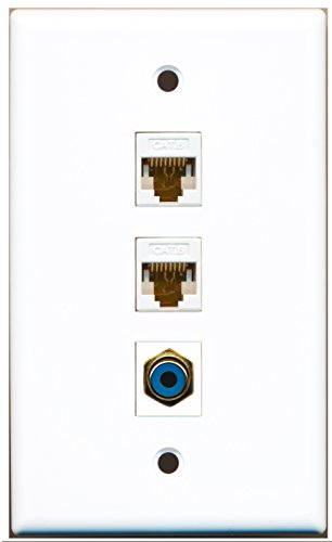 RiteAV - 1 Port RCA Blue 2 Port Cat6 Ethernet White Wall Plate