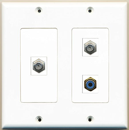 RiteAV - 1 Port RCA Blue 2 Port Coax Cable TV- F-Type - 2 Gang Wall Plate