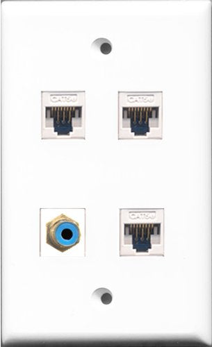 RiteAV - 1 Port RCA Blue 3 Port Cat5e Ethernet White Wall Plate