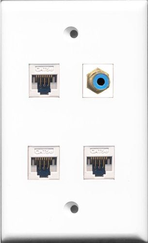RiteAV 1 Port RCA Blue 3 Port Cat5e Ethernet White Wall Plate