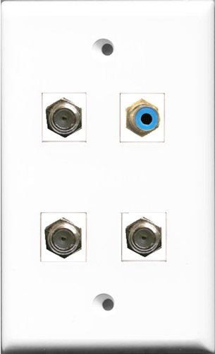 RiteAV 1 Port RCA Blue 3 Port Coax Cable TV- F-Type Wall Plate