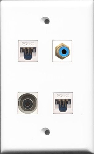 RiteAV 1 Port RCA Blue and 1 Port 3.5mm 2 Port Cat5e Ethernet White Wall Plate