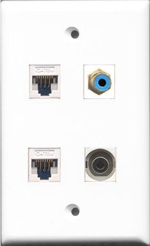 RiteAV 1 Port RCA Blue and 1 Port 3.5mm 2 Port Cat5e Ethernet White Wall Plate