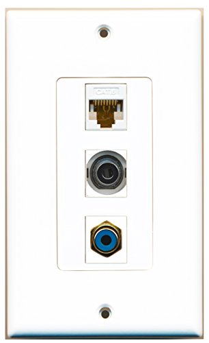 RiteAV - 1 Port RCA Blue and 1 Port 3.5mm and 1 Port Cat6 Ethernet White Decorative Wall Plate Decorative