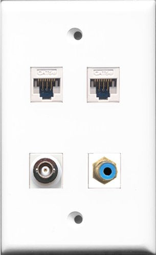 RiteAV - 1 Port RCA Blue and 1 Port BNC 2 Port Cat5e Ethernet White Wall Plate