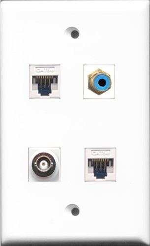 RiteAV 1 Port RCA Blue and 1 Port BNC 2 Port Cat5e Ethernet White Wall Plate