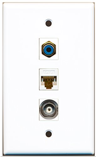 RiteAV - 1 Port RCA Blue and 1 Port BNC and 1 Port Cat6 Ethernet White Wall Plate