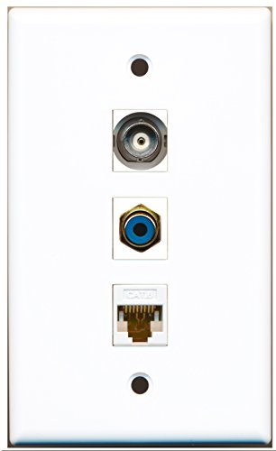 RiteAV - 1 Port RCA Blue and 1 Port BNC and 1 Port Cat6 Ethernet White Wall Plate