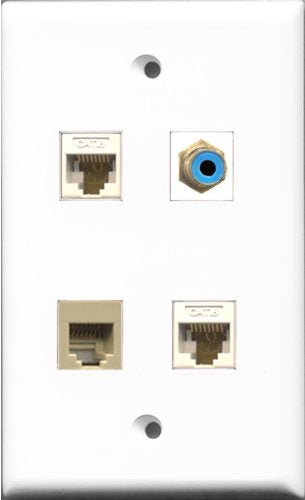 RiteAV 1 Port RCA Blue and 1 Port Phone RJ11 RJ12 Beige 2 Port Cat6 Ethernet White Wall Plate