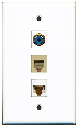 RiteAV - 1 Port RCA Blue and 1 Port Phone RJ11 RJ12 Beige and 1 Port Cat6 Ethernet White Wall Plate