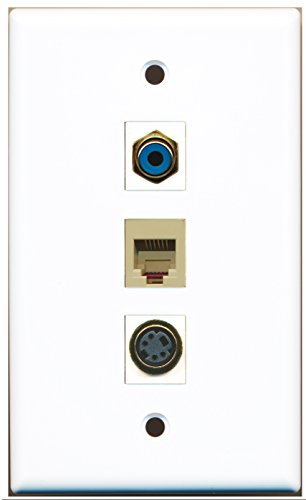 RiteAV - 1 Port RCA Blue and 1 Port Phone RJ11 RJ12 Beige and 1 Port S-Video Wall Plate