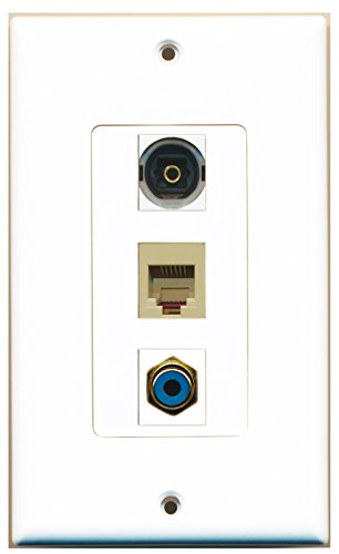 RiteAV - 1 Port RCA Blue and 1 Port Phone RJ11 RJ12 Beige and 1 Port Toslink Decorative Wall Plate Decorative