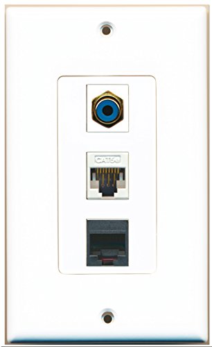 RiteAV - 1 Port RCA Blue and 1 Port Phone RJ11 RJ12 Black and 1 Port Cat5e Ethernet White Decorative Wall Plate