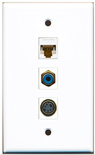 RiteAV - 1 Port RCA Blue and 1 Port S-Video and 1 Port Cat6 Ethernet White Wall Plate