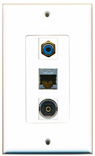 RiteAV - 1 Port RCA Blue and 1 Port Shielded Cat6 Ethernet and 1 Port Toslink Decorative Wall Plate Decorative